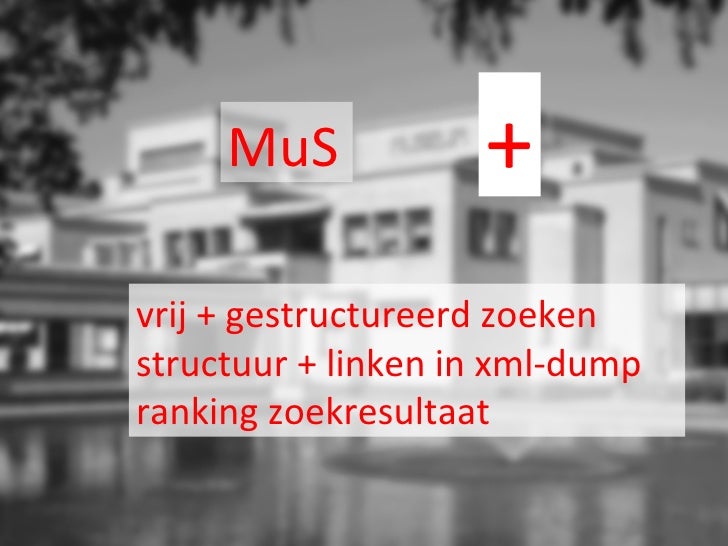 • 3. MuS +vrij + gestructureerd zoekenstructuur + linken in xml-dumpranking zoekresultaat